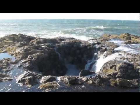 На вид это напоминает обыкновенную каменистую впадину, неподалеку плещутся волны океана и вроде всё спокойно… Но во время приливов в этом месте начинаются чудеса. Вода постепенно стекает в отверстие, потом её течение становится более бурным и превращается в дикую игру.