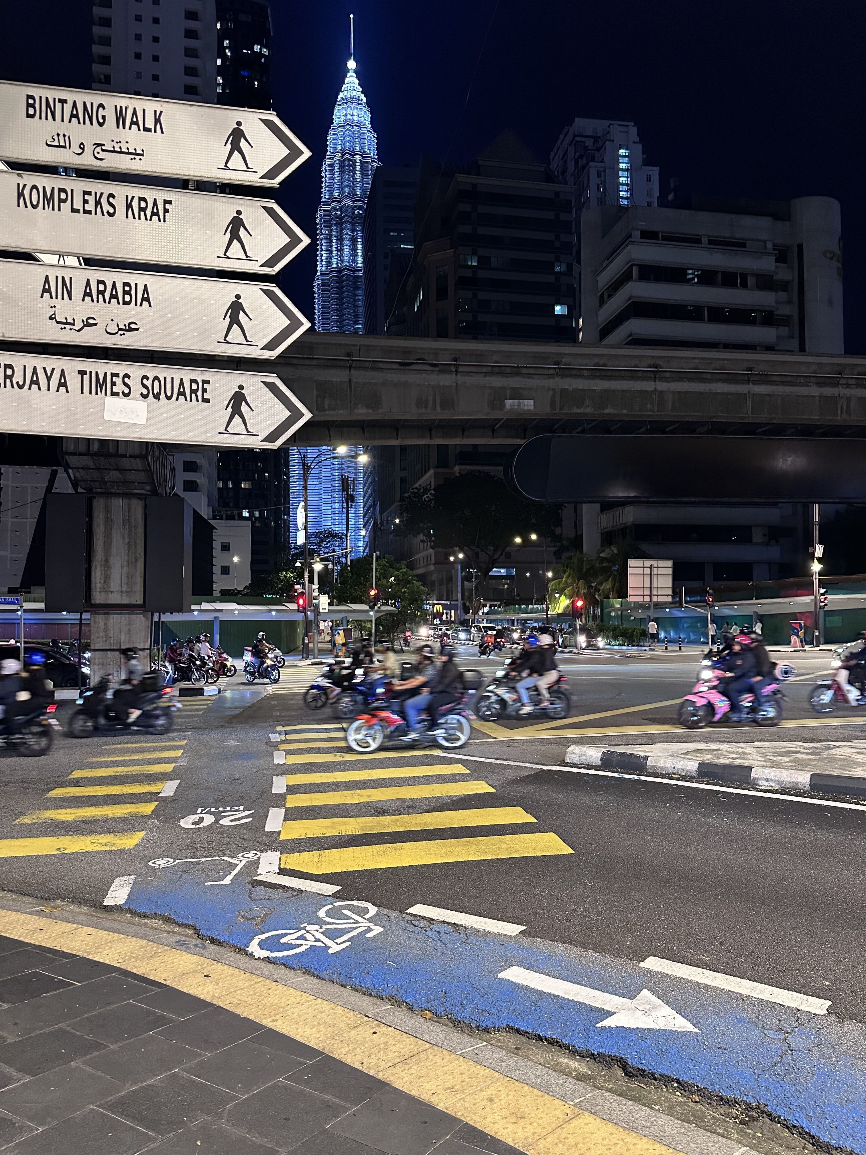 подсветку Петронас и телебашни выключают ночью, улицы становятся очень спокойными.