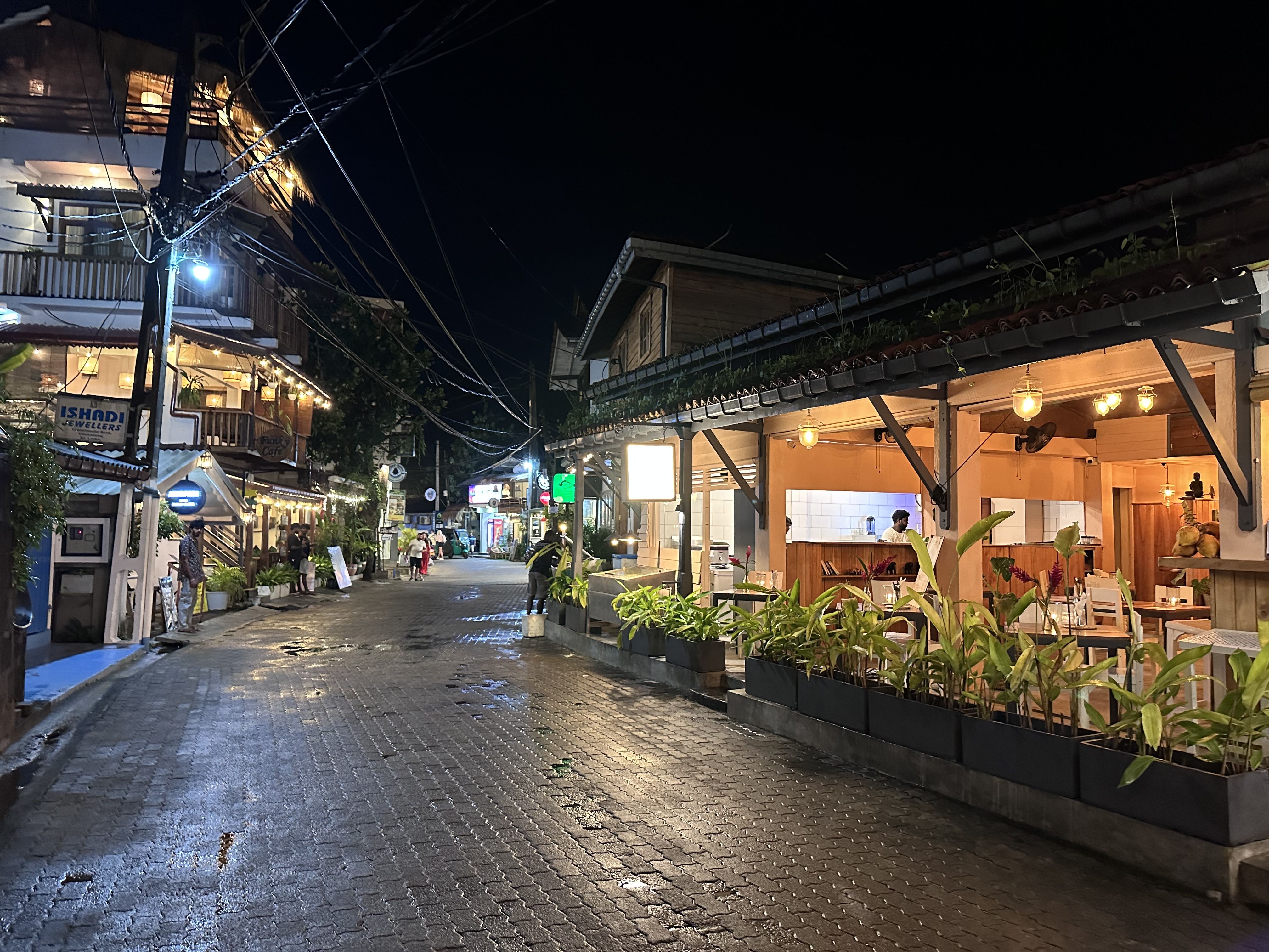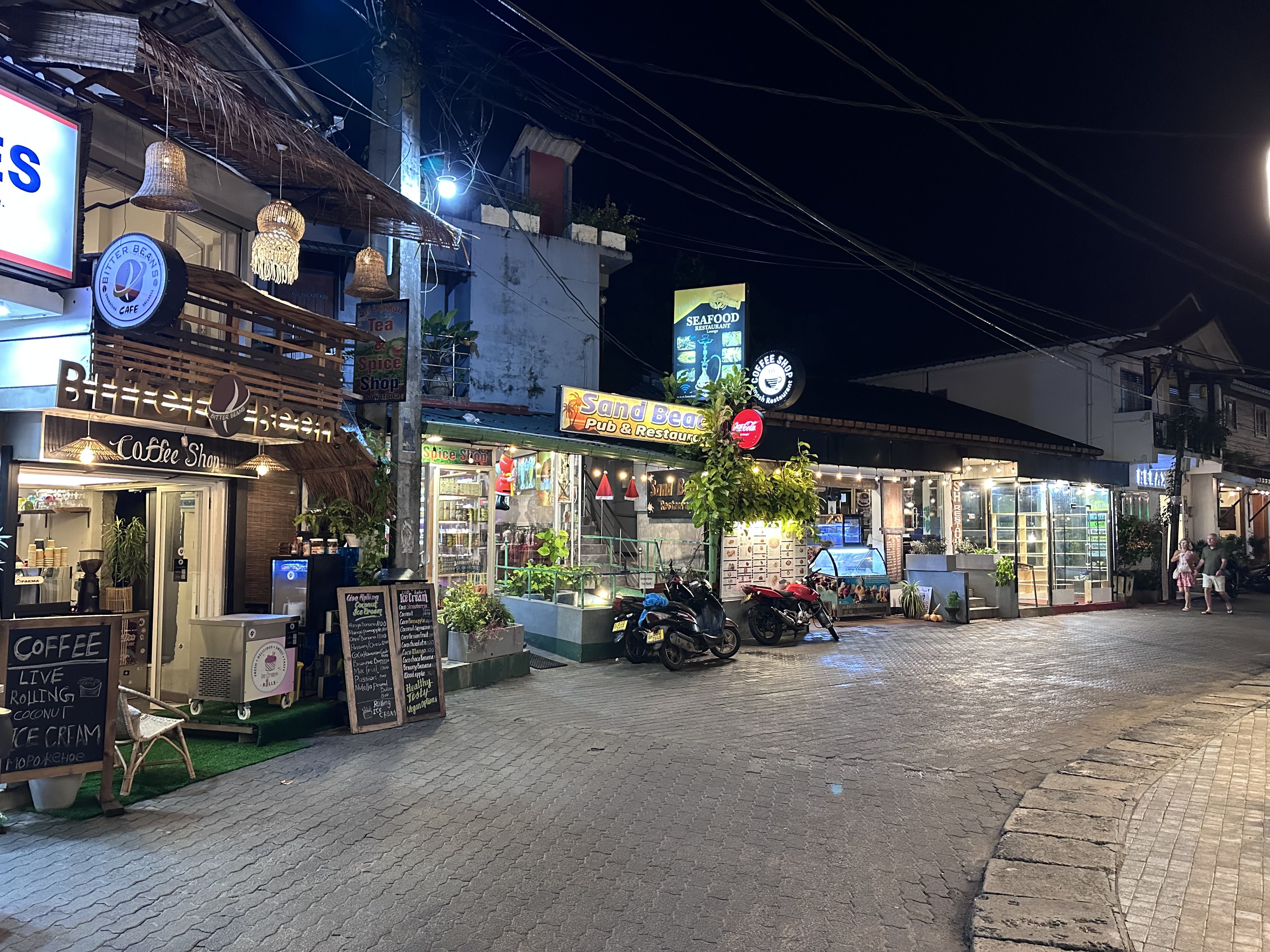 А главная улица — это просто улица, плотно застроенная ресторанами, где постоянно кто-то будет зазывать в кафе, предлагать меню, или спрашивать на тук-туке, куда вас отвезти.