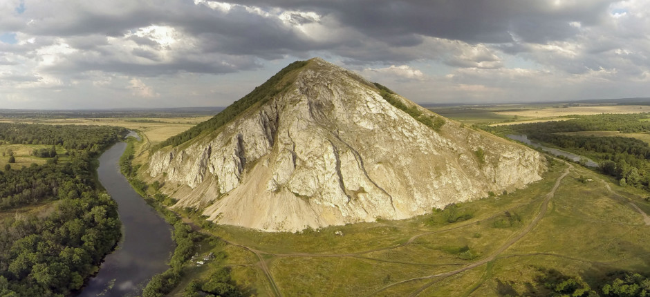Посреди степей Башкирии гордо возвышаются Стерлитамакские шиханы (Bashkortostan Shihans). Эти три горы-одиночки вытянулись, будто часовые, вдоль реки Белой. Конусообразные холмы, покрытые зеленью, очень древние — более 260 миллионов лет назад они лежали на дне тропического моря, обрастая известняком и водорослями. Это самые настоящие коралловые рифы, которые теперь красуются на суше.