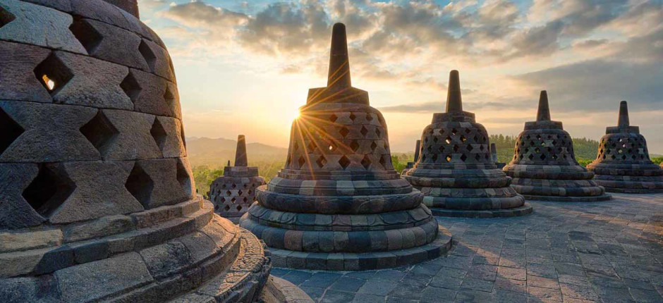 Боробудур (Borobudur) – буддистский храм в Индонезии, возведённый в 8-9 веке до нашей эры. Является неповторимым памятником индонезийского искусства среднего века. Среди паломников Боробудур пользуется большой популярностью, они идут по часовой стрелке 7 раз на каждом из уровней, полагая, что такой ритуал сможет принести им счастье. Для того чтобы все желания и сокровенные мечты были исполнены, необходимо дотронуться к каждой Будде из ступ на верхних рядах.