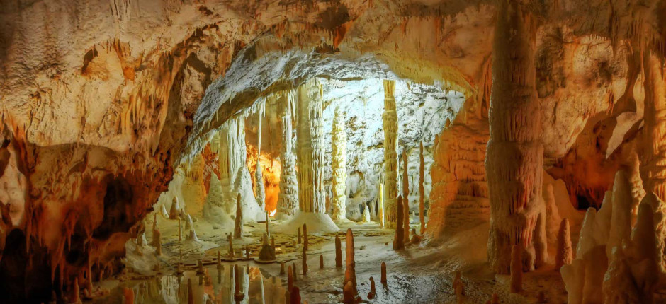 Grotte di Frasassi — это сложная пещерная система. Сначала вы входите в Бездну Анкона, которая считается одной из крупнейших пещер во всей Европе. Камера полна сталагмитов, которые поднимаются, как расплавленные свечи, и сталактитов, свисающих с потолка, которые напоминают трубочный орган.