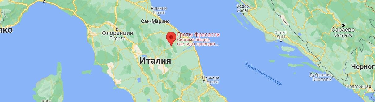 В глубине холмов недалеко от отдалённой деревни Генга, в итальянском регионе Марке, находятся пещеры Фрасасси (Grotte di Frasassi, Frasassi Caves) — страна чудес известковых наслоений, существовавшая ещё 150 миллионов лет назад.