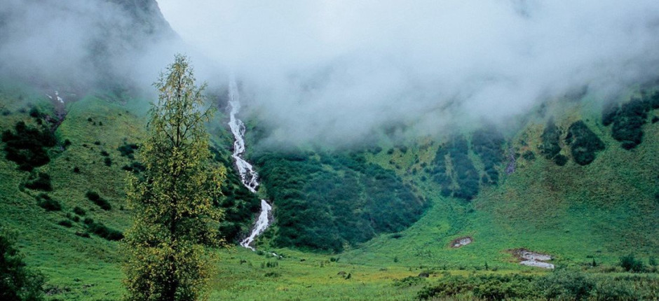 Добавьте к этому вид заснеженных вершин на заднем фоне — ну просто праздничная открытка! Труднодоступность этого места играет ему на руку: здесь совершенно чистая, не загрязнённая человеком природа. Встретить дикое животное в здешних местах куда вероятнее, чем увидеть ещё одного туриста.