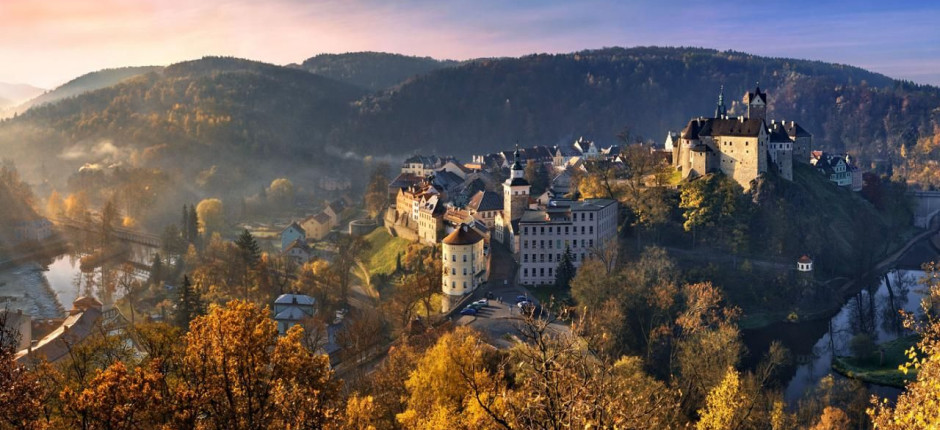 Каменный средневековый замок Локет расположен в одноименном крохотном городке в 14 км от Карловых Вар. Излучина реки Огрже напоминает локоть — именно от этого слова и произошло название крепости.