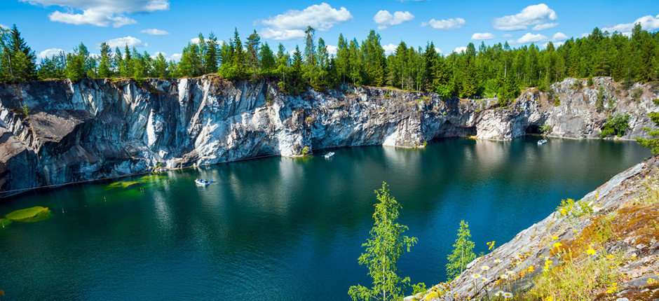 Рускеальские карьеры частично затоплены, и теперь они похожи на заполненные водой углубления с крутыми стенами. Основной карьер Рускеала размером 460 х 100 метров и больше 50 метров в глубину.
