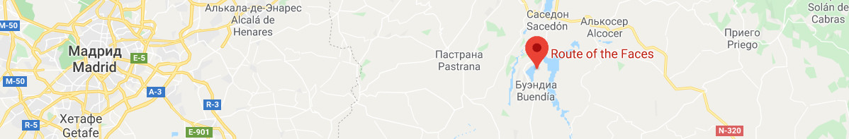 Во время прогулки по Рута-де-лас-Карас единственный звук, который слышит посетитель — это ветер, дующий сквозь сосны, заставляющий лица как-то оживать. Среди множества лиц находятся Кришна, Арджуна и Будда Майтрейя безмятежно смотрящий на водохранилище Буэндиа, в то время как Внеземной мир, Голем и Череп создают более пугающее зрелище.