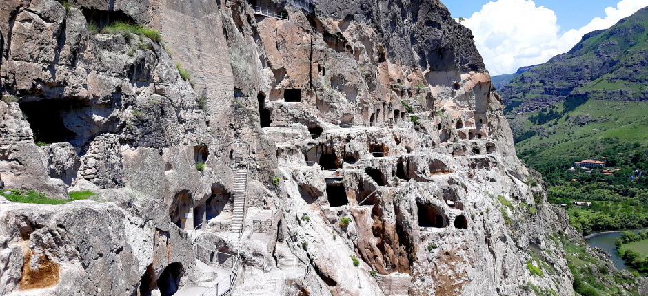 Одна из самых известных и интересных достопримечательностей Грузии 12 -13 века – пещерный город-монастырь Вардзия (Vardzia). Целая сеть тоннелей и пещер расположена внутри отвесных скал, чем и привлекает многих туристов со всего мира. Однако, к сожалению, на сегодняшний день уцелело не более 30% от ранее великой крепости Вардзия.